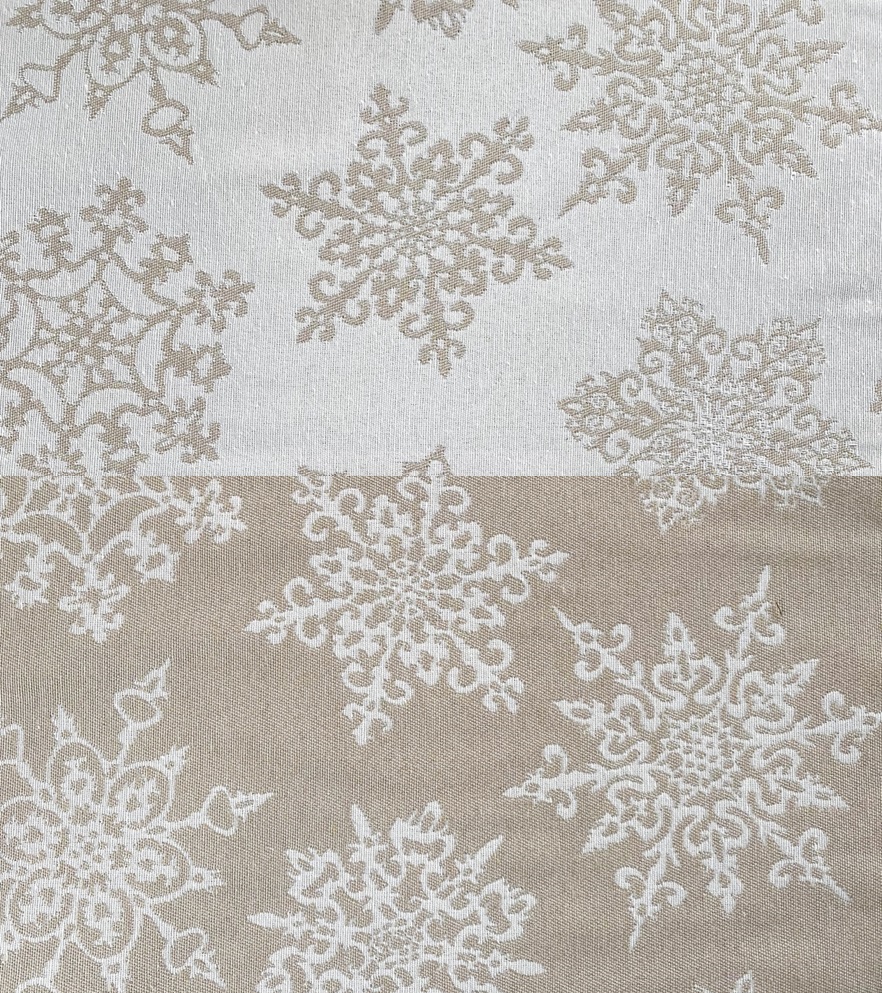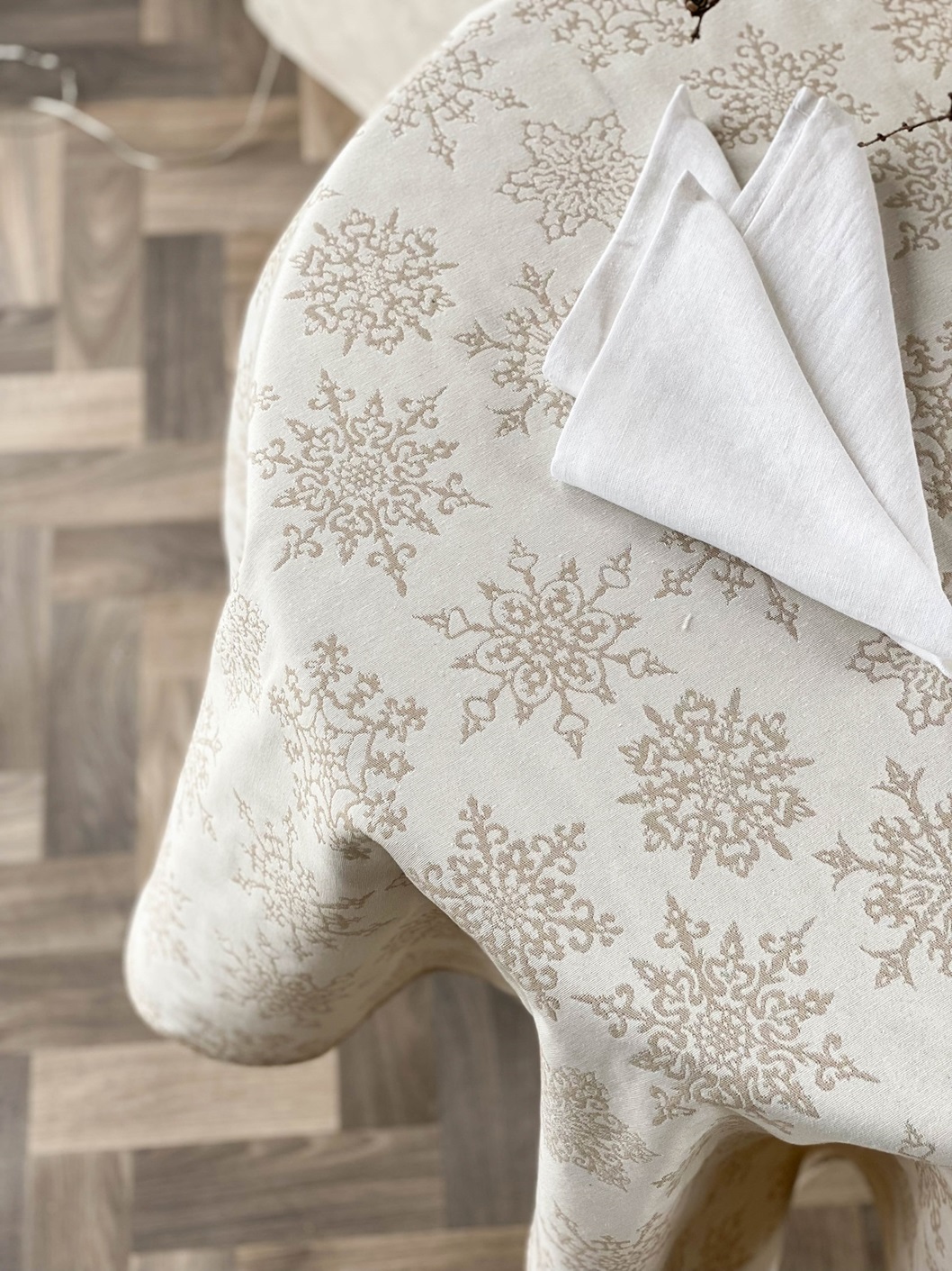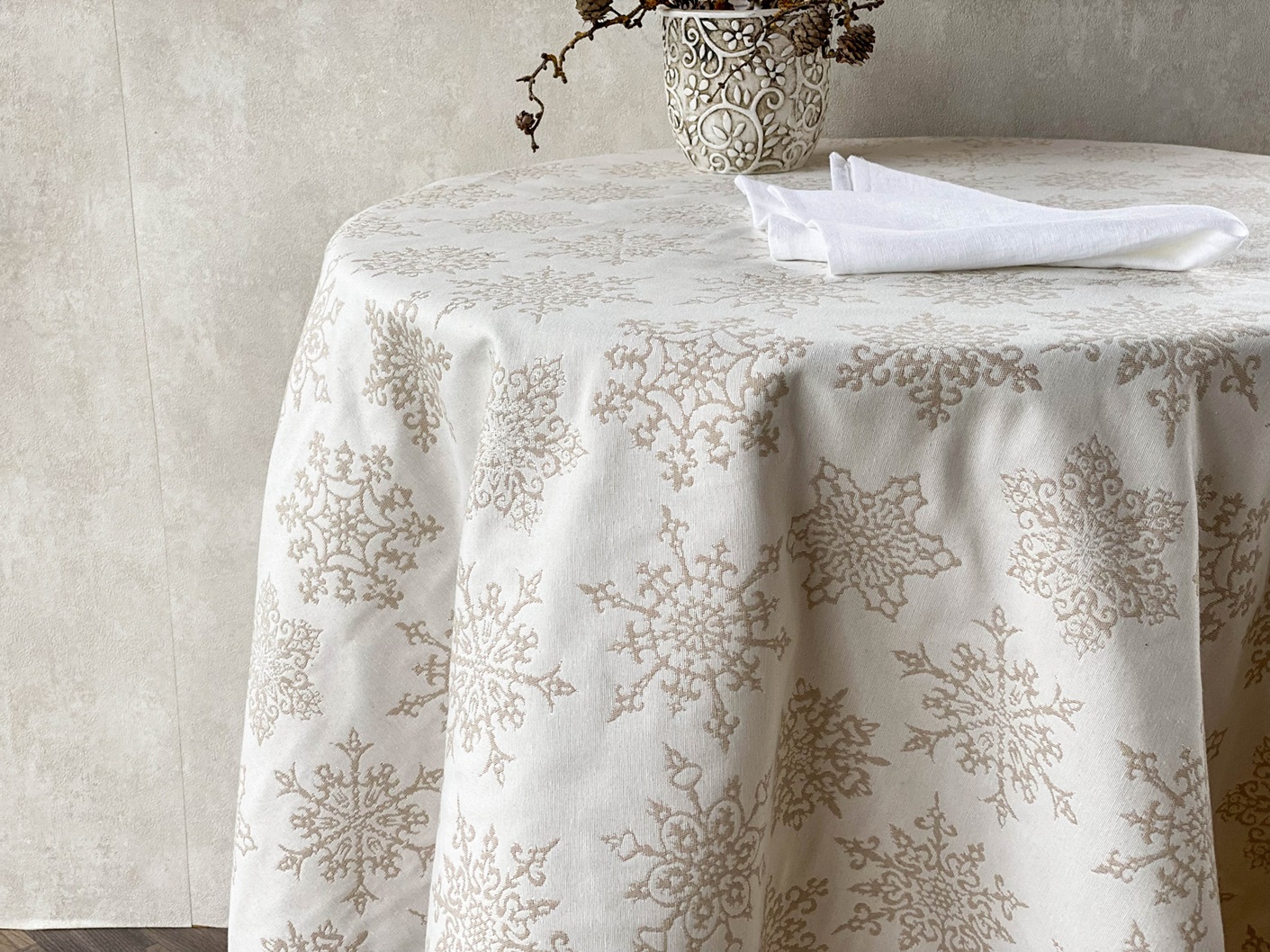 Švelnios kakavos spalvos Kalėdinė staltiesė su snaigėmis
